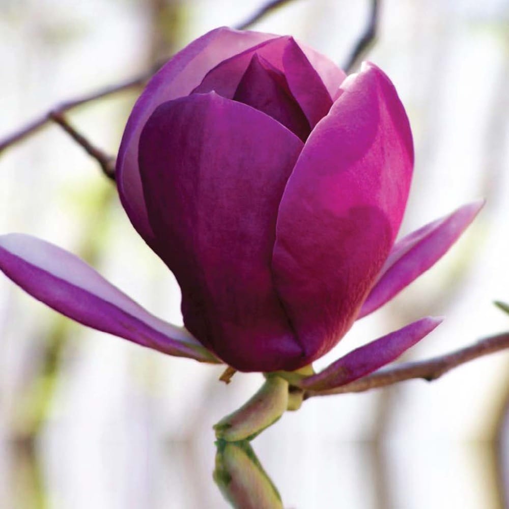 МАГНОЛИЯ СУЛАНЖА (Magnolia × soulangeana). Гибридный сорт, выведенный во Франции в начале XIX столетия Этьеном Суланжем, французским биологом-ботаником, офицером и дипломатом французской армии, основателем Института садоводства и Парижского общества садоводов. Из Франции этот гибрид довольно быстро, за несколько десятилетий, распространился по территории Европы, в Великобританию и Северную Америку. Считается, что именно успех Суланжа по гибридизации магнолий предопределил дальнейший интерес к разведению этих растений. Магнолия Суланжа – древовидный кустарник с раскидистой кроной, в высоту она достигает 8 м. Ветви растут почти от самой земли, крона принимает округлую или пирамидальную форму. Кустарник способен пережить зимы с температурами до минус 25 градусов. У этого вида магнолии крупные бокалообразные цветы с лепестками длиной 10–12 см. В зависимости от сорта они бывают белыми, розовыми, красными и двухцветными. Цветение начинается в апреле–мае, когда наступают тёплые дни. Сначала появляются цветы, и только потом распускается листва. Листья имеют яйцевидную форму с острыми краями. Их лицевая сторона глянцевая, нижняя – матовая с мелкими ворсинками. Плодоносит магнолия Суланжа ближе к сентябрю. Её плоды имеют овальную форму и похожи на шишки.