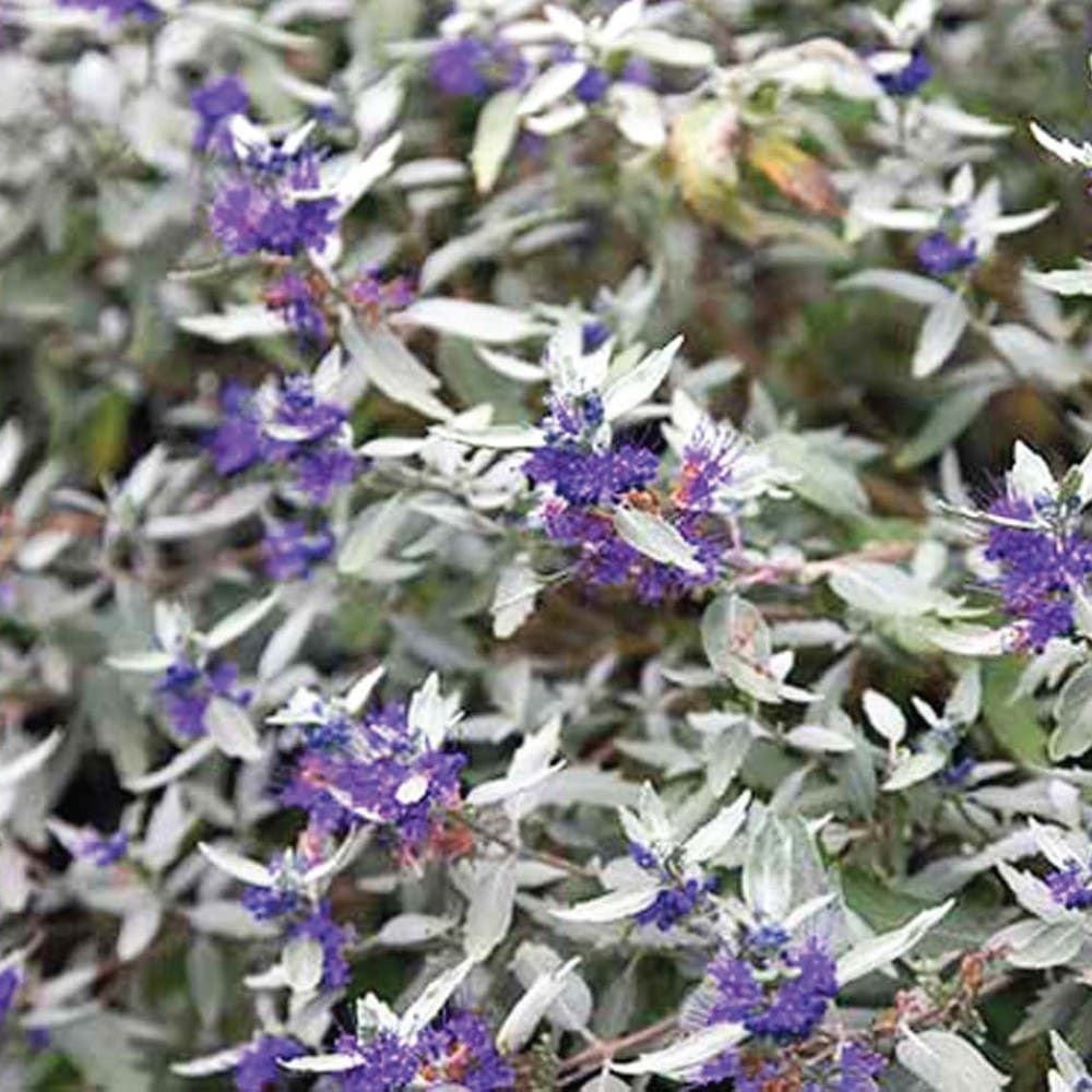 Кустарники с синими, пурпурно-синими цветками всегда востребованы в ландшафтных композициях, ведь их не так уж и много. Особое место в этой привилегированной группе занимают кариоптерисы, которые отличаются буквально магической красотой. От их кустов идеальной полушаровидной формы, полностью покрытых сине-фиолетовыми цветками, невозможно оторвать взгляд. Странно, что при многочисленных достоинствах кариоптерисы не получили широкого распространения в озеленении. Кариоптерис седой (крылоорешник седой, Bartblume) родом из Китая и Японии. Это довольно морозоустойчивое растение – он выдерживает температуру до –23°C. Правда, молодые саженцы нуждаются в укрытии в первые пару зим после посадки.