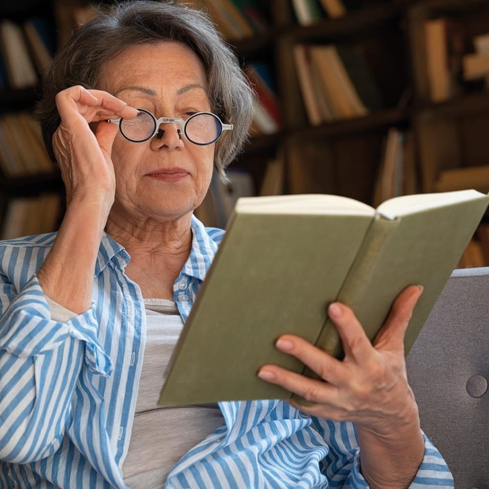 Основная причина падения зрения – пресбиопия, или возрастная дальнозоркость. С годами хрусталик глаза становится менее эластичным и не так легко меняет форму, чтобы фокусироваться на предметах, находящихся вблизи.