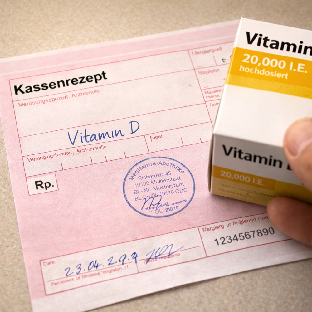 Витамин D – самый частый случай. Многие покупают его самостоятельно, не зная, что закон предусматривает ситуации, когда врач вправе выписать его за счёт кассы. Согласно Anlage I, Vitamin D выписывается по рецепту только в следующих случаях: