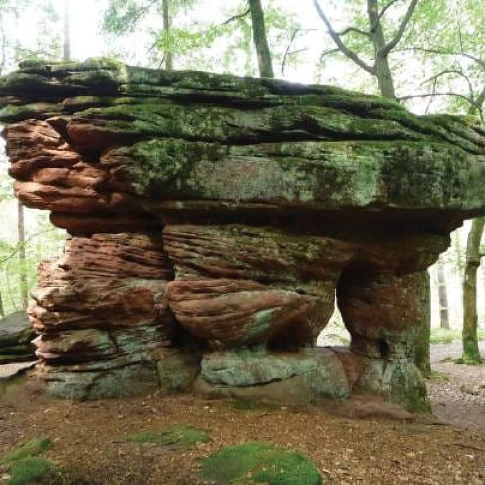 Ее называют Чертов стол – Teufelstisch. Это самая крупная и зрелищная из скал Пфальца. Благодаря своим огромным размерам и причудливой форме она считается одной из самых интересных ландшафтных достопримечательностей земли. В 2006 году Чертов стол в Хинтервайдентале (Hinterweidenthal) получил звание Nationaler Geotop, а в 2009-м попал в десятку самых знаменитых немецких чудес природы, заняв в рейтинге седьмое место.