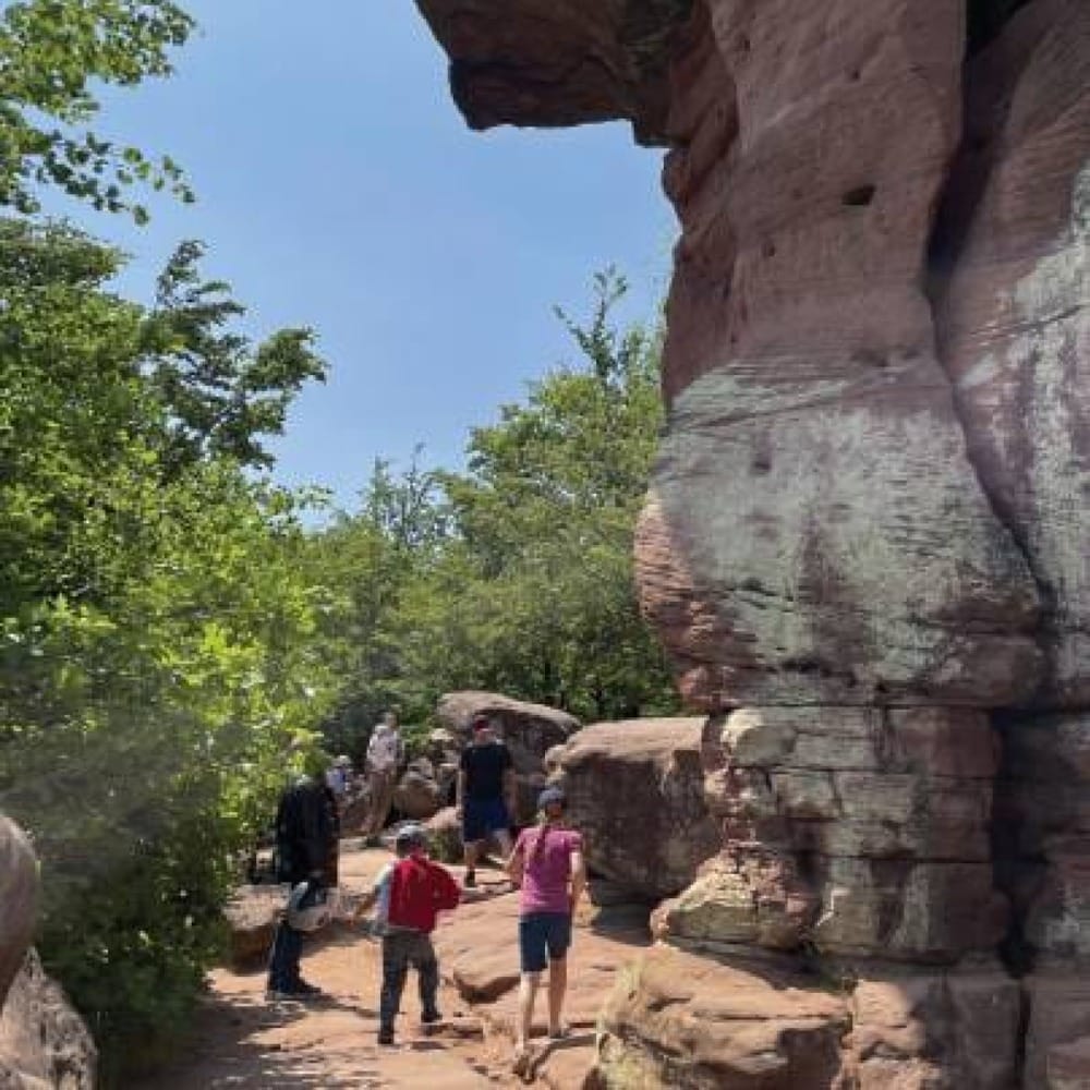 Именно они покрывали значительную часть площади современного Пфальцского леса. В них чередовались твёрдые и мягкие слои – так называемые Rehberg-Schichten. Твёрдые слои красно-фиолетового цвета состояли в основном из каменистых речных отложений, а мелкозернистые оранжевые или мягкие светло-красные – из принесённой ветром пыли. Разумеется, они были гораздо менее устойчивыми к воздействию ветра и воды. Под действием эрозии за тысячелетия мягкие слои постепенно разрушались, обнажая более твёрдое и прочное «ядро».