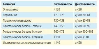 Измеряя артериальное давление, различают два значения: систолическое и диастолическое. В народе эти показатели называют верхним и нижним давлением. Первое фиксируется во время сокращения сердца и перекачивания крови в аорту, второе – когда сердечная мышца расслаблена и сердце наполняется кровью. Общепринято оптимальным значением считать до 120/80 включительно. В таблице приведены категории артериального давления согласно с рекомендациями Европейского сообщества кардиологов (ESC).
