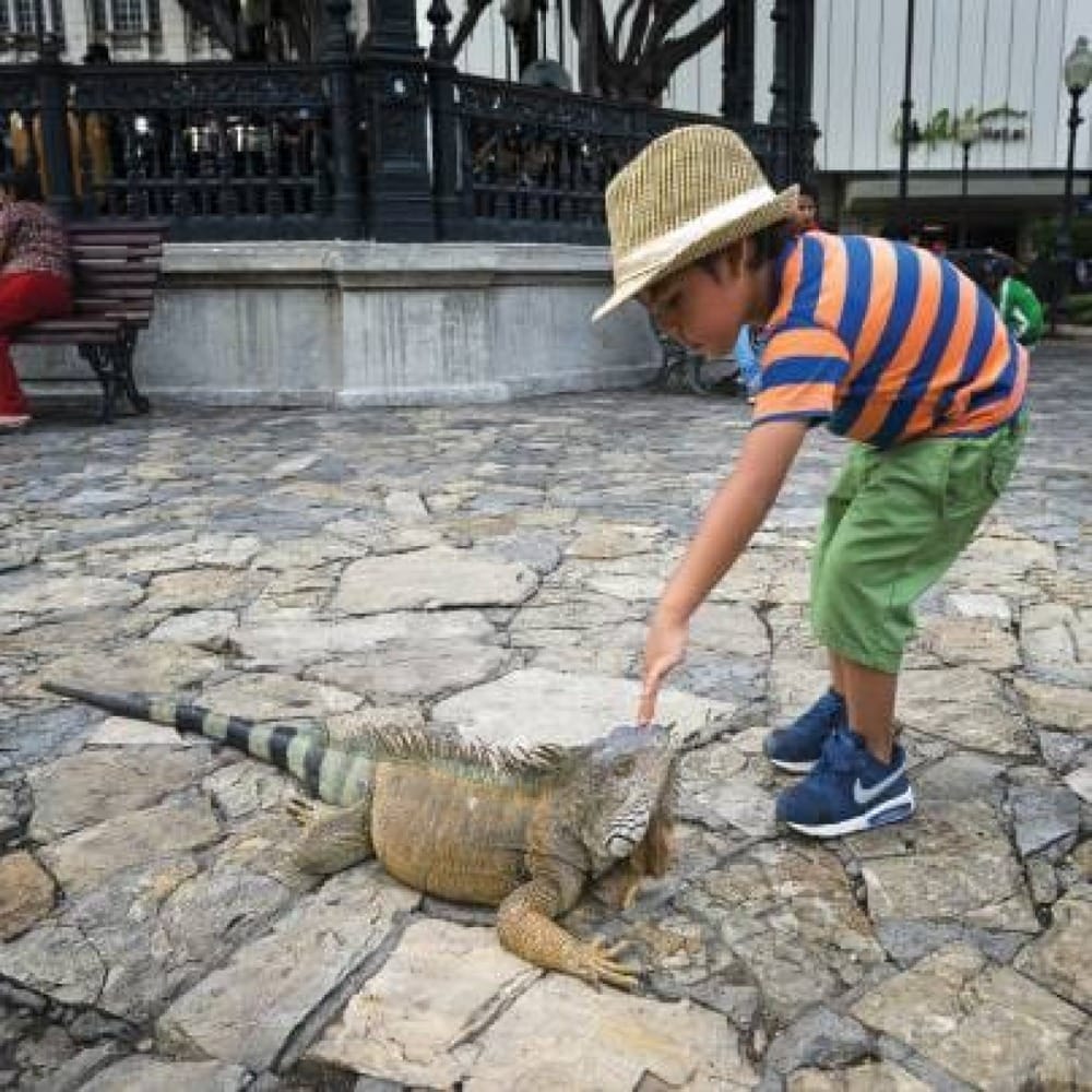 Через Гуаякиль проходит канатная дорога. И это не аттракцион для туристов, а обычный вид транспорта, связывающий разные районы города. Мы же исследуем центр пешком, любуясь строениями, созданными в колониальной стиле, улицами, площадями и памятниками. И вот мы – на набережной реки Гуаяс. На прибрежном бульваре (здесь его называют Малекон) – шумно и многолюдно. Тут охотно проводят время горожане – приходят сюда целыми семьями, чтобы прокатиться на колесе обозрения, посидеть в кафе или стать зрителем импровизированного шоу, организованного уличными танцорами брейк-данса.